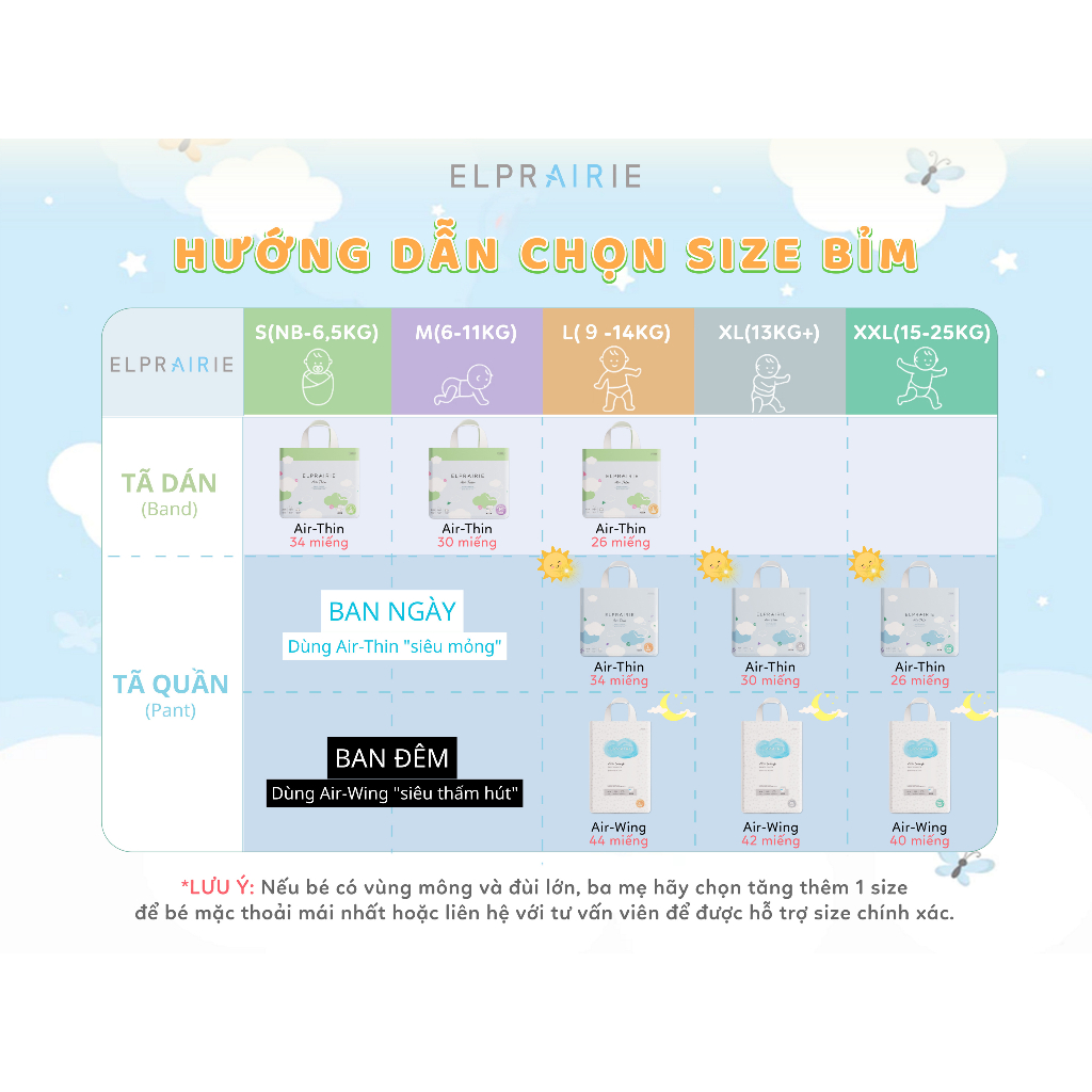 💥 1/ Bỉm Elprairie Air Thin: (Bỉm Ngày: Có bỉm dán và bỉm quần)