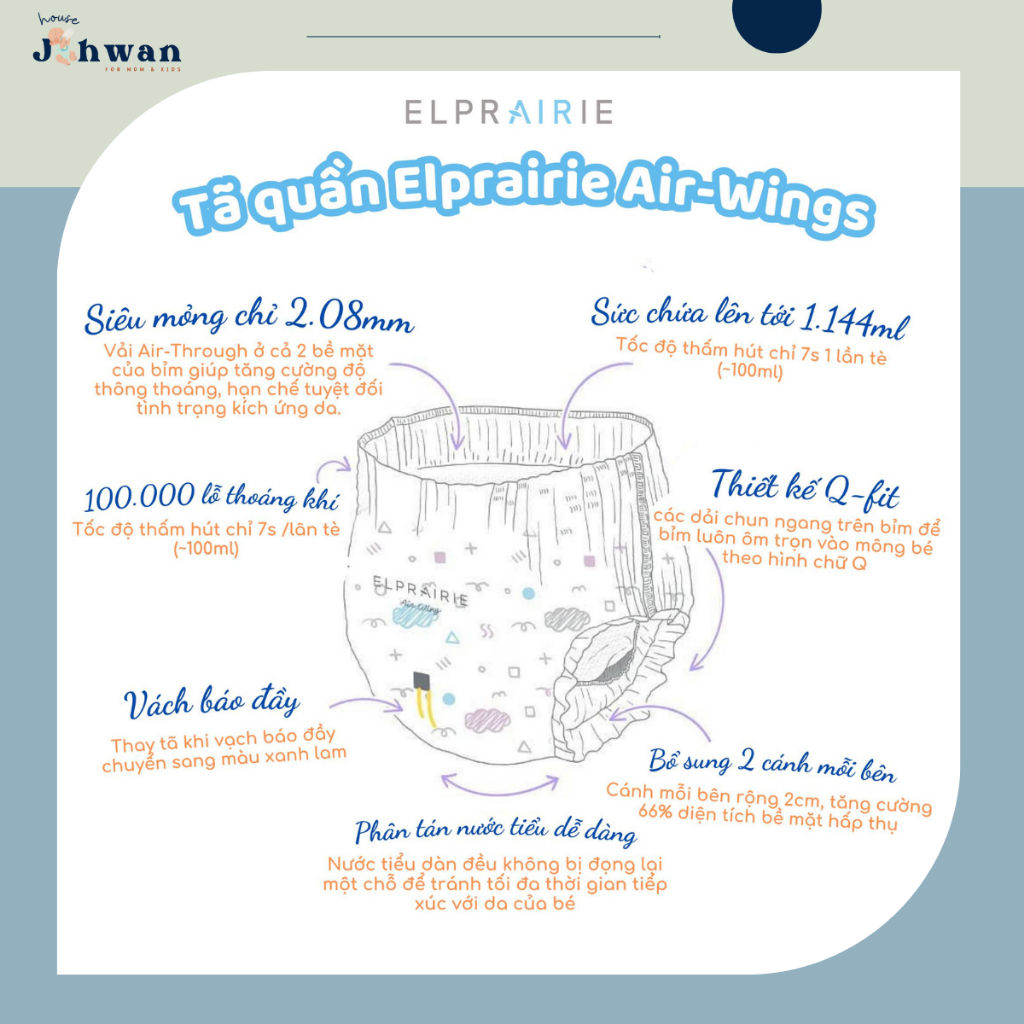 💥 2/ Bỉm Quần Elprairie Air Wing: (Chỉ có bỉm Quần – Sử dụng Ban Đêm)