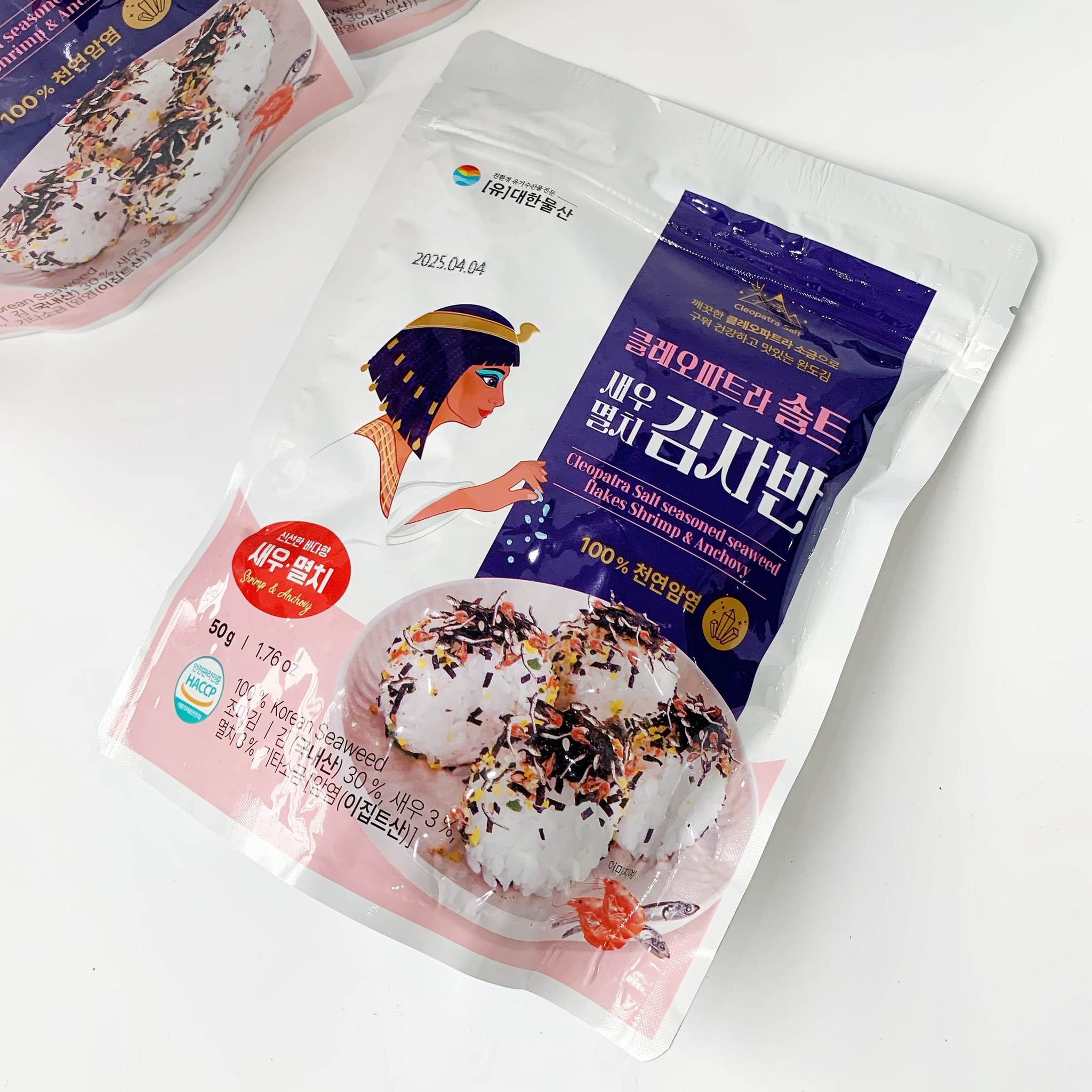 Rong biển muối Cleopatra là sản phẩm được làm từ rong biển mọc ở khu vực sạch nhất Hàn Quốc, và được bổ sung thêm muối sạch từ Ai cập giúp ngăn ngừa ung thư và tăng cường chức năng tuyến giáp do nồng độ muối không quá mặn như muối biển thông thường.
